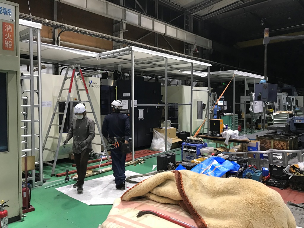 大型NC機械を2台導入するお客様。製品精度の関係で、NC機械周辺の環境をクリーンに保たなければならない御要望でした。