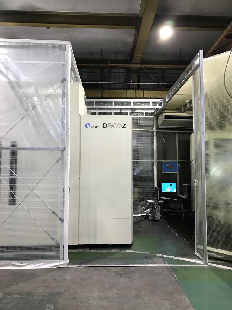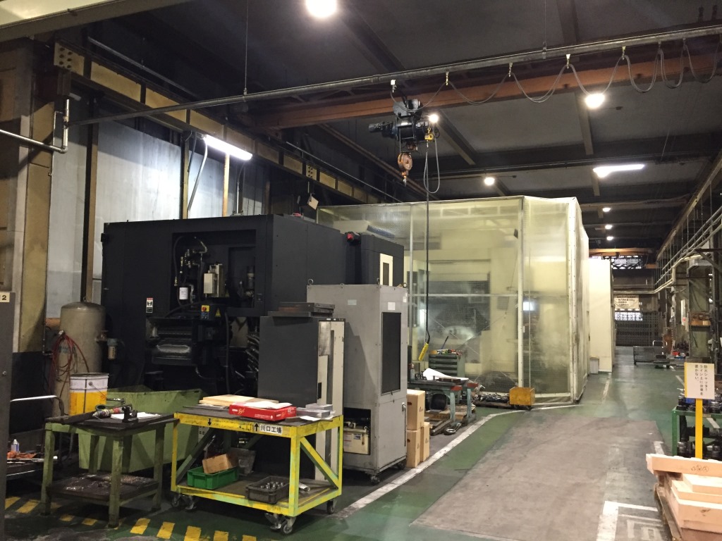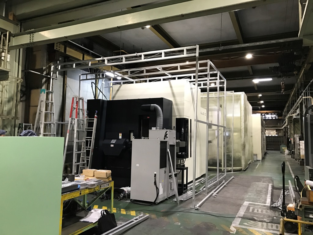 ↑ 製品や金型の出し入れにクレーンが必要なので、L型のスライド扉を設けました。↓ 動画です