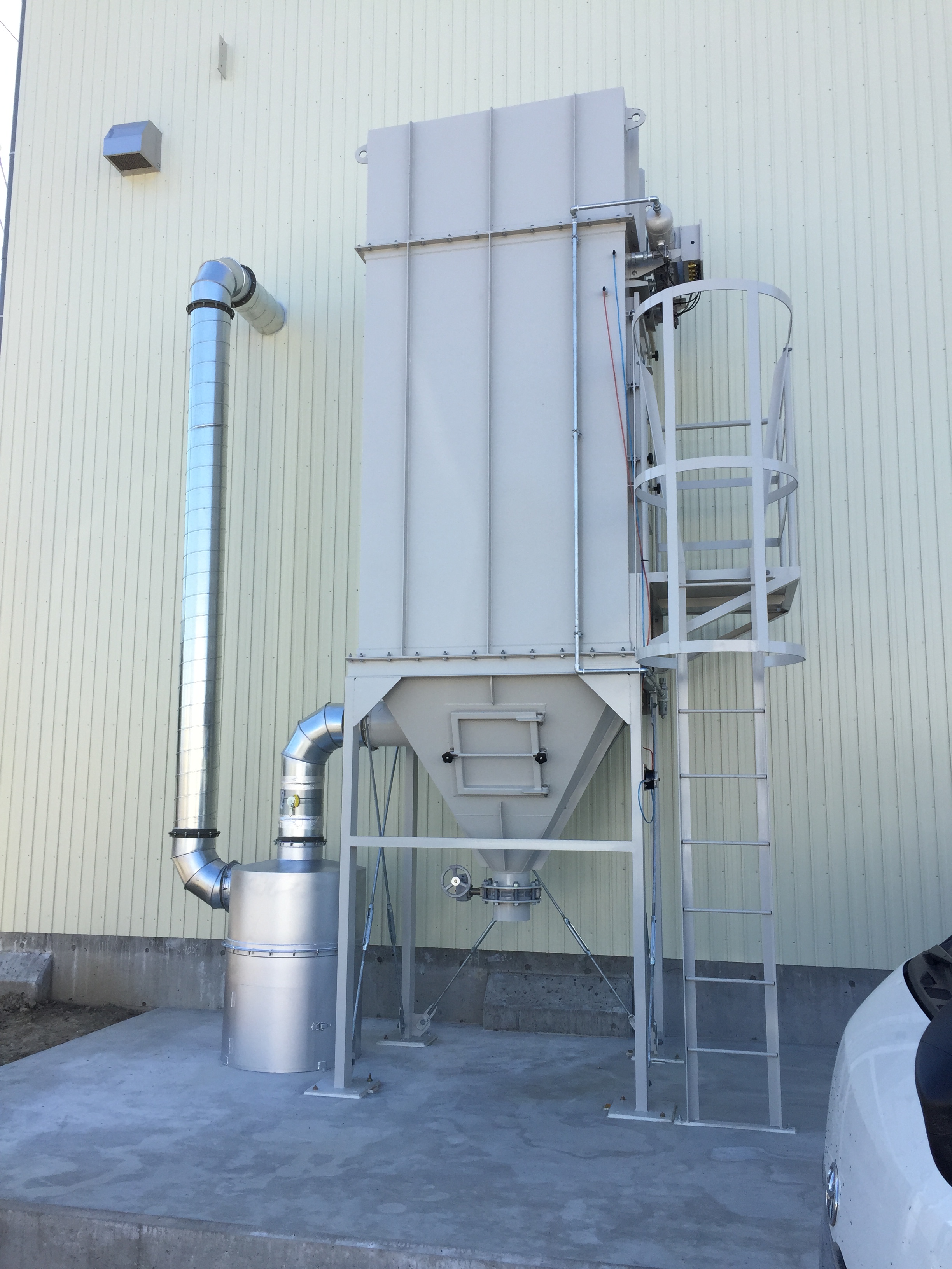 ↑弊社集塵機です。ブラスト室から粉塵が出ないように能力選定するところが今回は肝でした^^;