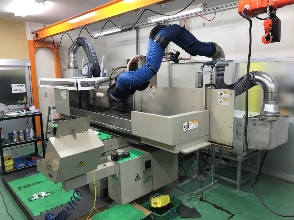 ↑対象の研削盤。浮遊する水溶性ミストを吸引したい。