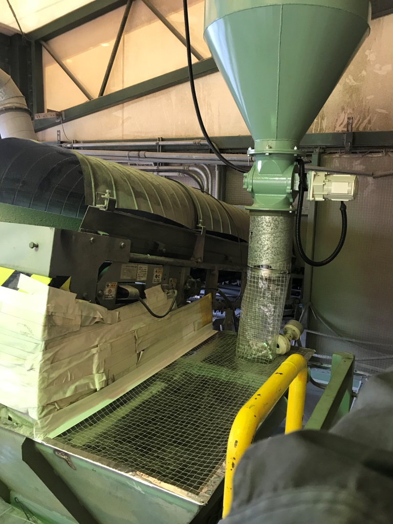 ↑ サイクロン下部の状態。集塵機前にこのサイクロンに粉塵空気を通すことで、ほとんどの粉塵を捕集します。