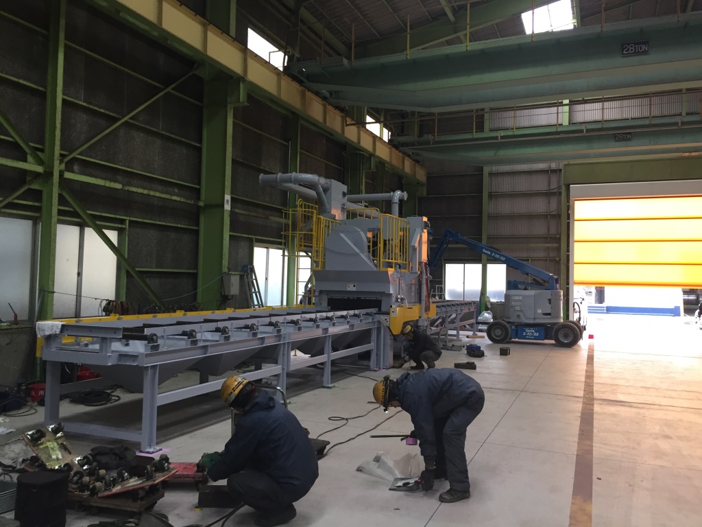 ショットブラストメーカーの方々にお手伝いいただき完成です!!