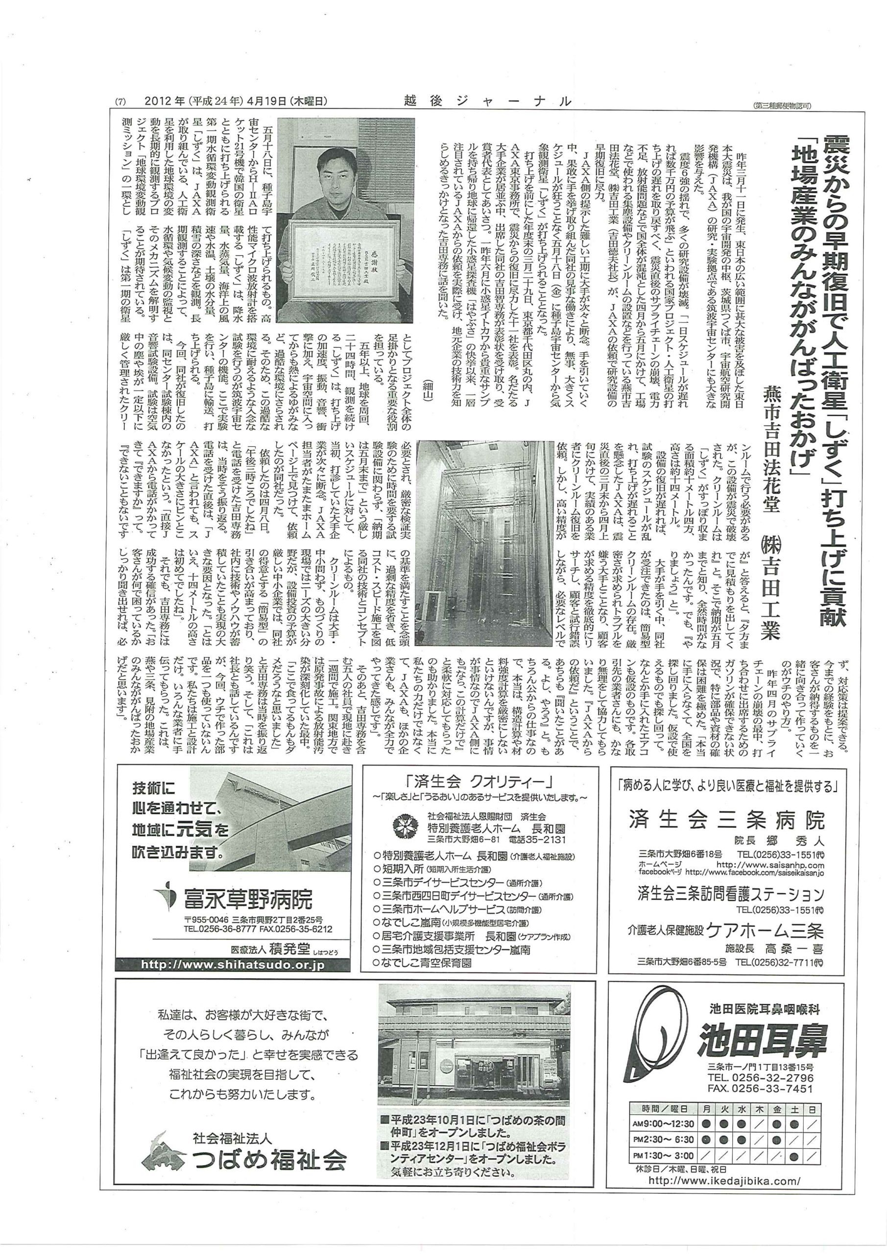 ←2011年の大震災時に対応したことでJAXAから表彰されました。