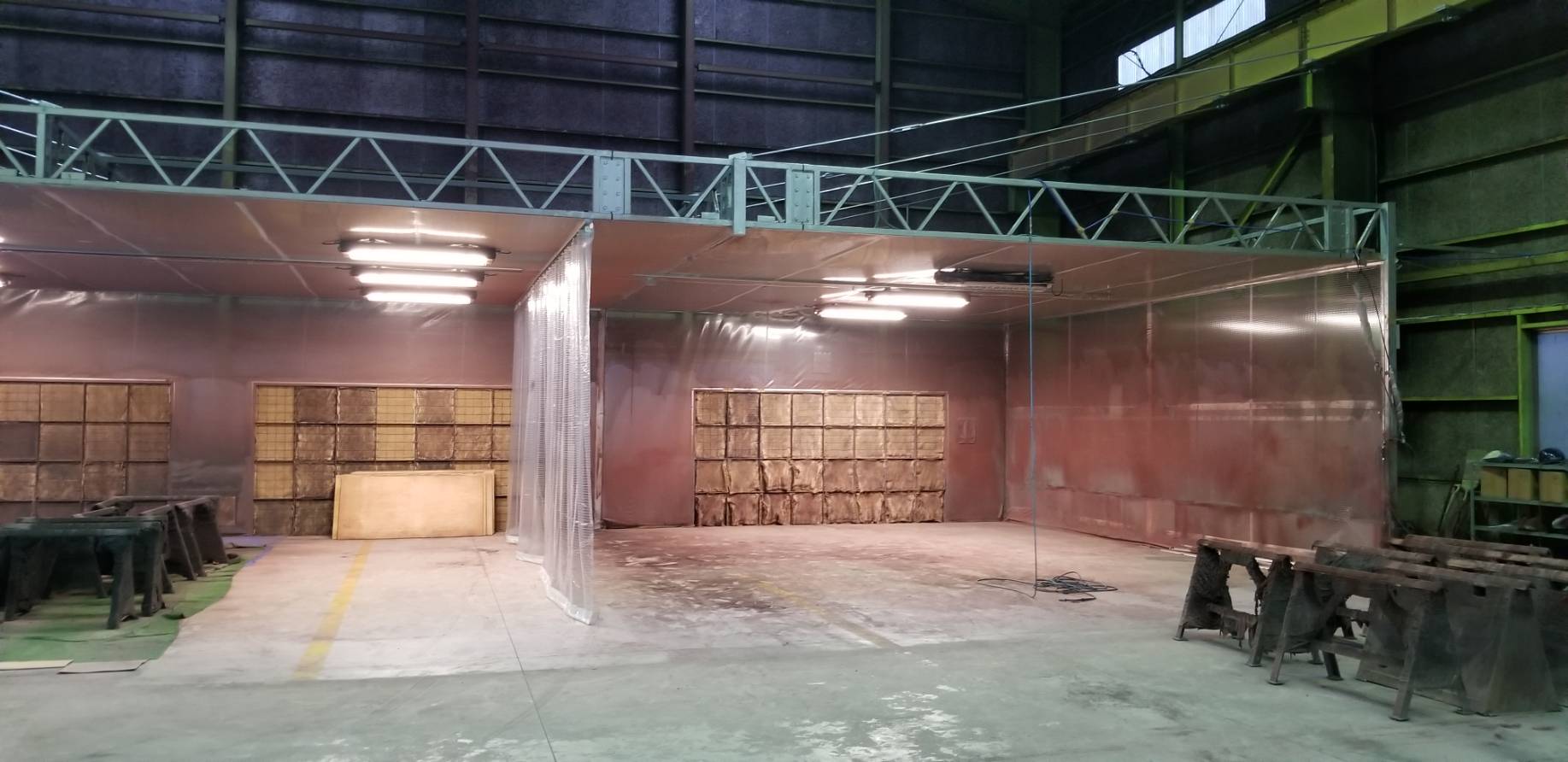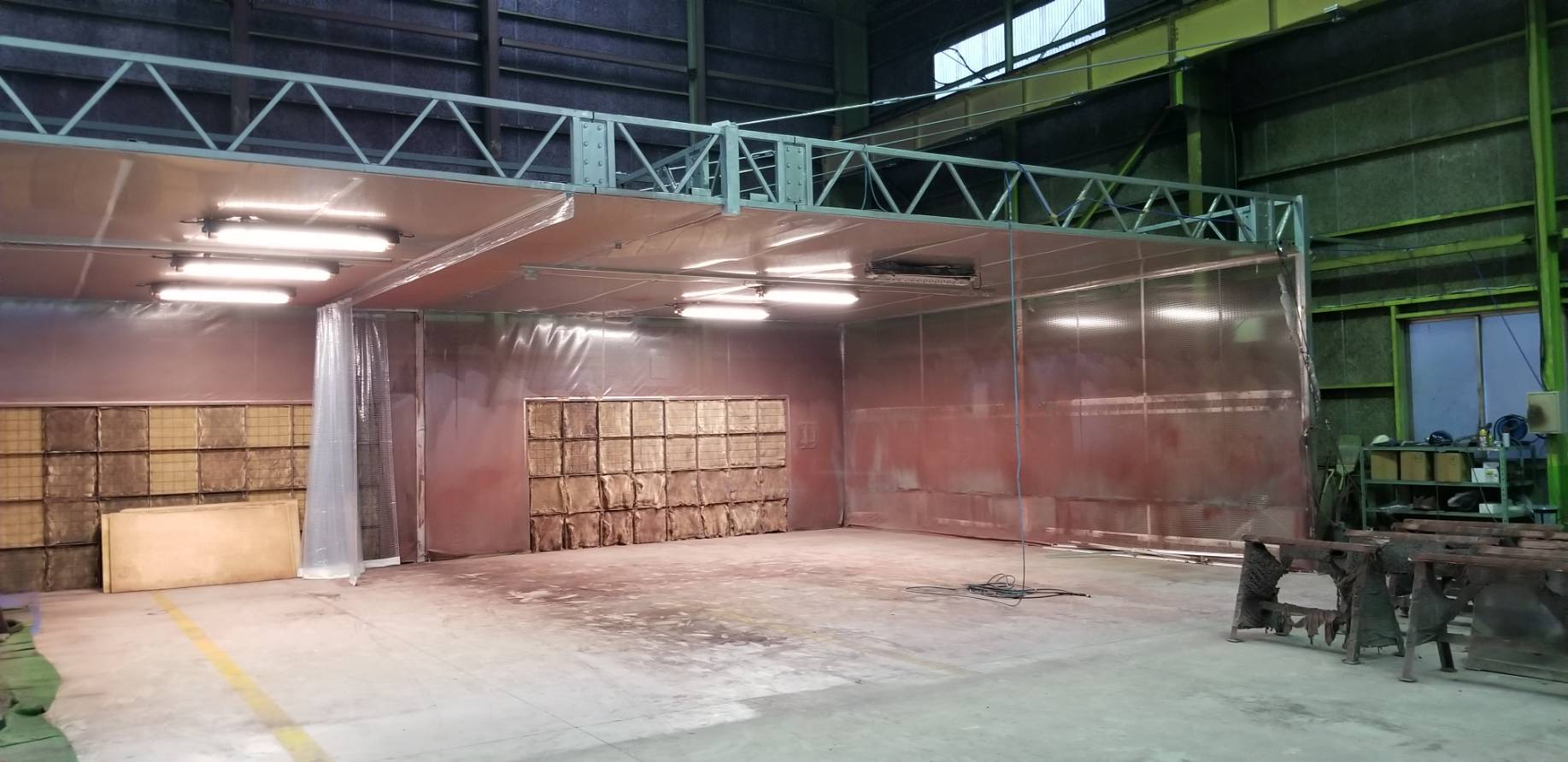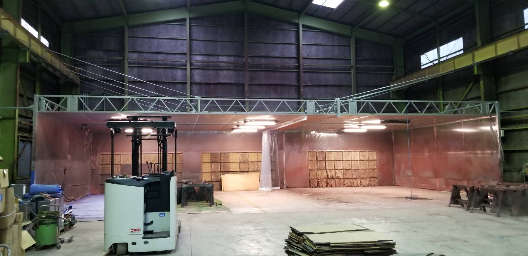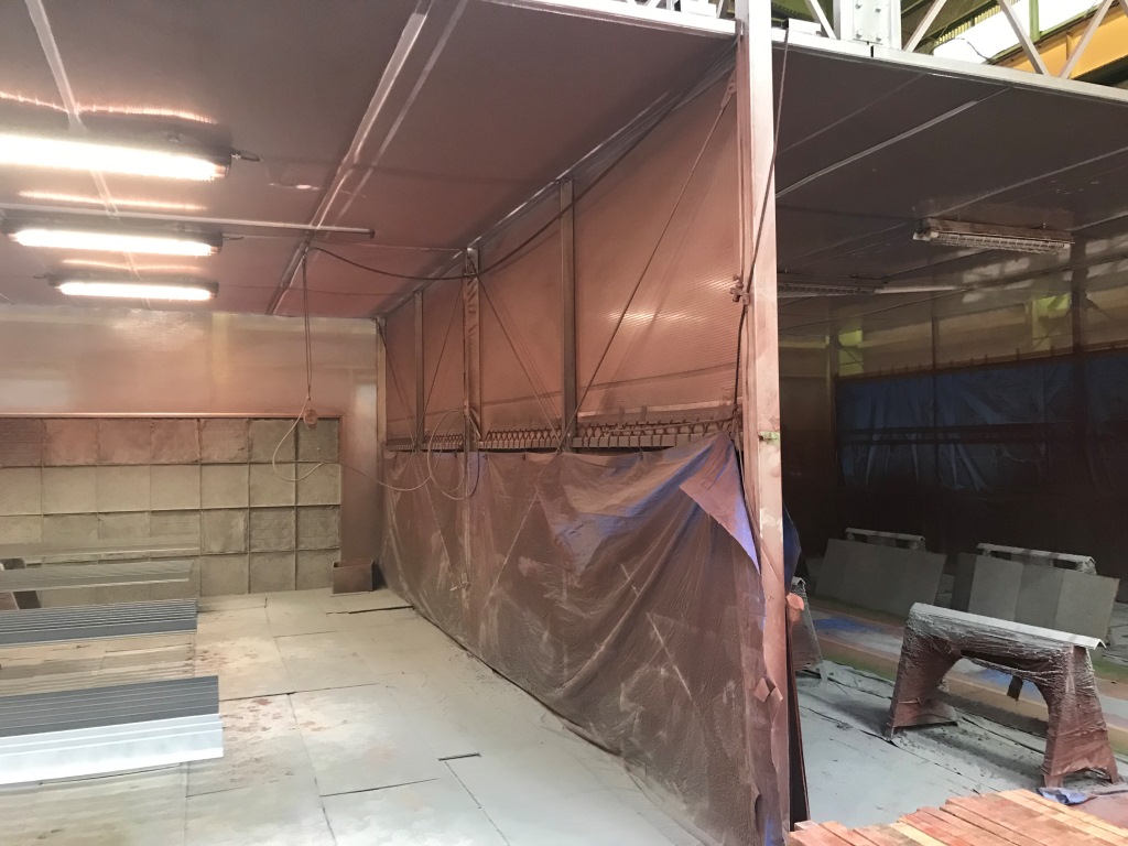 幅10m と 6m の塗装ブースを並列利用されているお客様。「W16mの塗装ブースに改造してほしい」という要望でした。