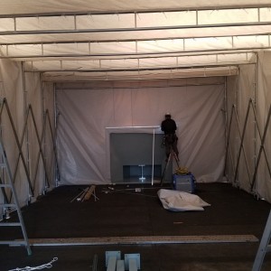 ↑フード・ダクト・ファンの設置、ジャバラテント骨組み組立