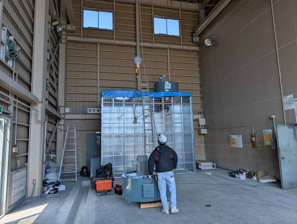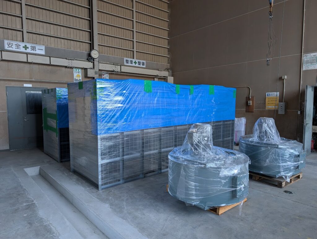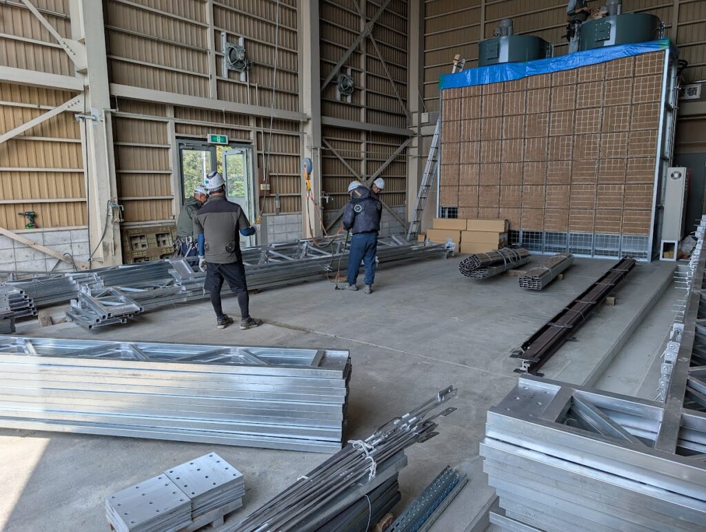 ↑排気ユニットは無事に組みあがりました。屋外では排気ダクトの工事が進んでおります。