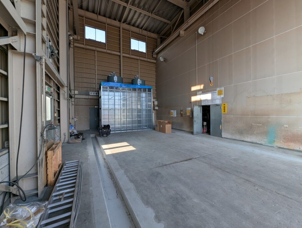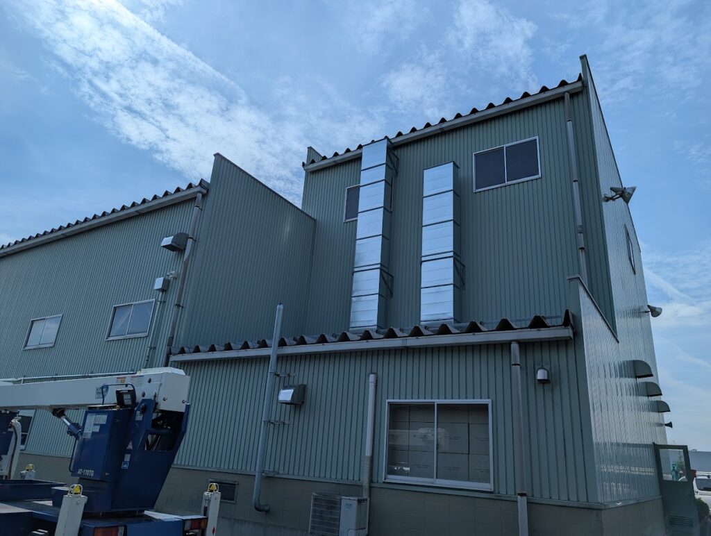 こちらに組み込まれるフィルターで塗装ミストを捕集します。W4.5m×H4.0mのZAM鋼板製です。