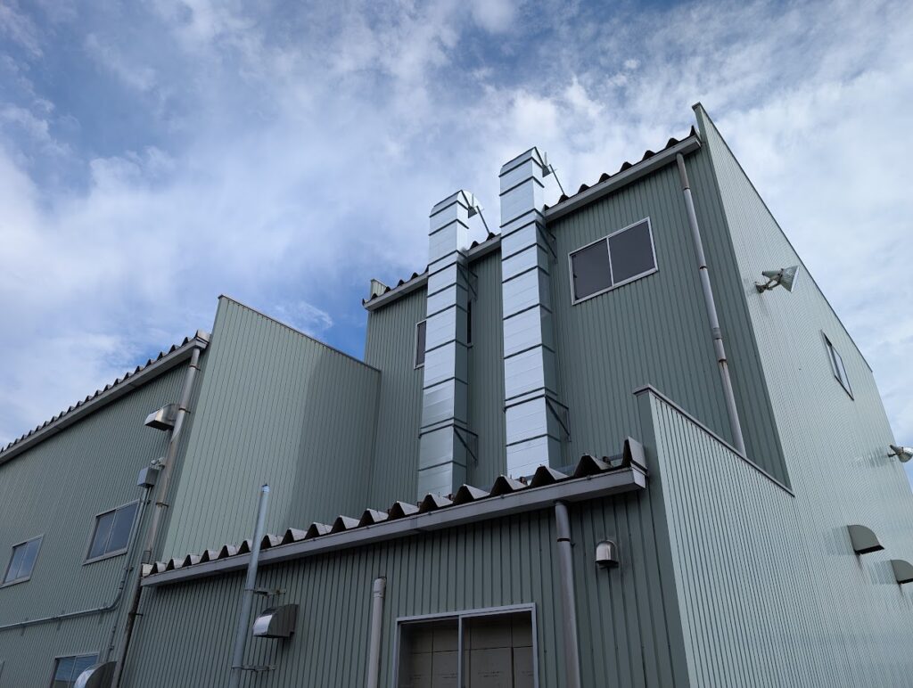 900×400の亜鉛鋼板製ダクトが2ライン、屋根上まで立ち上げます。