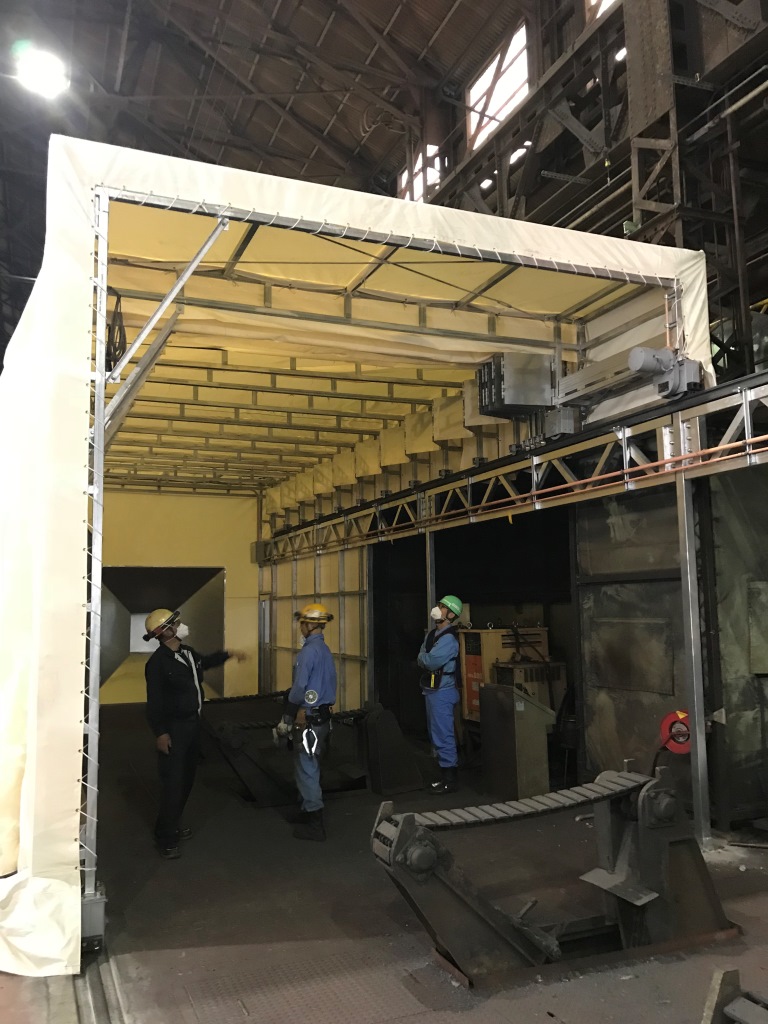 線路レールの溶断作業で大量の煙が発生するため、「作業場を囲って煙を集塵したい」と言う御要望でした。