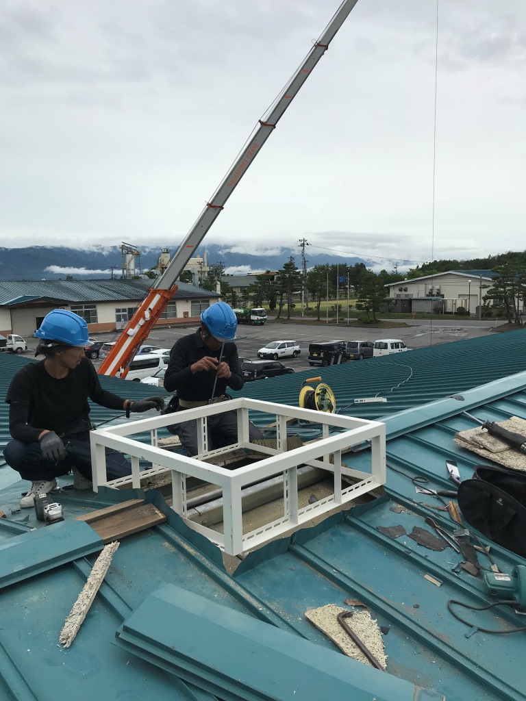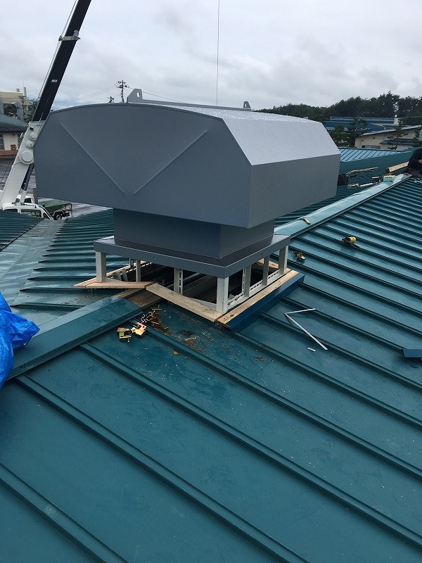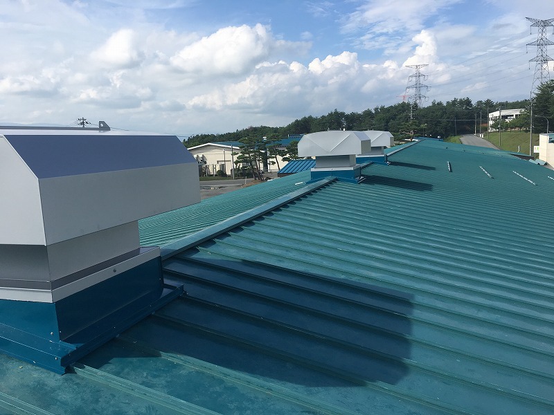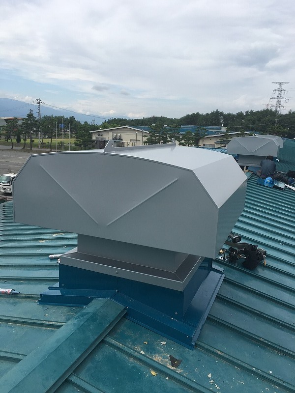 樹脂を溶かす炉がありながらも、工場換気設備が無かったため、熱排気効率のいいルーフファンを設置しました。